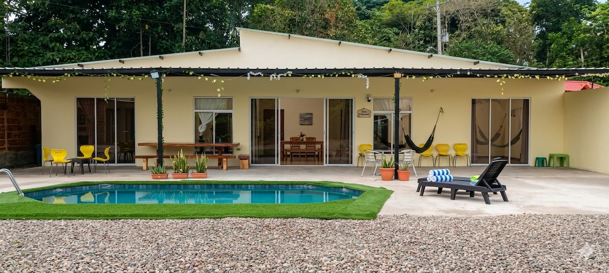 Casa campestre con piscina, BBQ, 5 habitaciones y espacios para teletrabajo cerca de Villavicencio. Bienvenidos a tu refugio campestre ideal cerca de Villavicencio. Esta espaciosa casa de 280 m² en un terreno privado de 1.000 m² está diseñada para grupos grandes, familias y viajeros que buscan descanso, conexión con la naturaleza y comodidad total. A solo 15 minutos del centro comercial Viva y 8 minutos de la Universidad de los Llanos, tendrás acceso rápido a tiendas, supermercados y servicios.