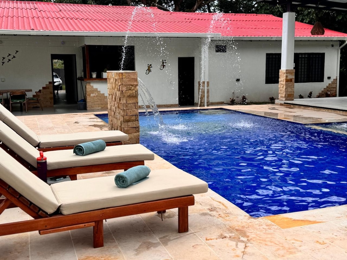 Desconecta de tus preocupaciones en este espacio tan amplio y sereno. Diseñada por sus propietarios con pasión para los huespedes, 6 habitaciones cada una con aire acondicionado y baño privado, piscina con privacidad, 4 zonas sociales, amplia cocina, bicicletas, más de 15 planes recomendados en los alrededores y 2 redes WiFi que permiten estar conectado con el mundo sin desconectarse de la Naturaleza...