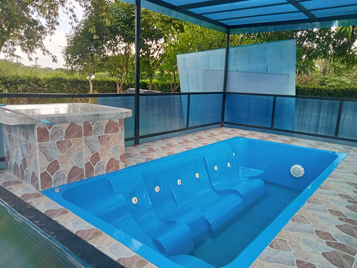 CASA QUINTA en Villavicencio Meta, ofrecemos tranquilidad y comodidad . 4 habitaciones grandes con baño privado, sala, comedor interior y exterior, cocina integral estilo americano, lavanderia. Si se requiere y la ocupación es mayor a 16 personas se habilita la habitación principal con baño privado , 2 balcones uno interior y otro exterior, vestier. EXTERIOR: Piscina, jacuzzi, duchas. Baño, cancha voleibol, parque infantil, zona bbq. PARQUEADERO: para 10 carros .