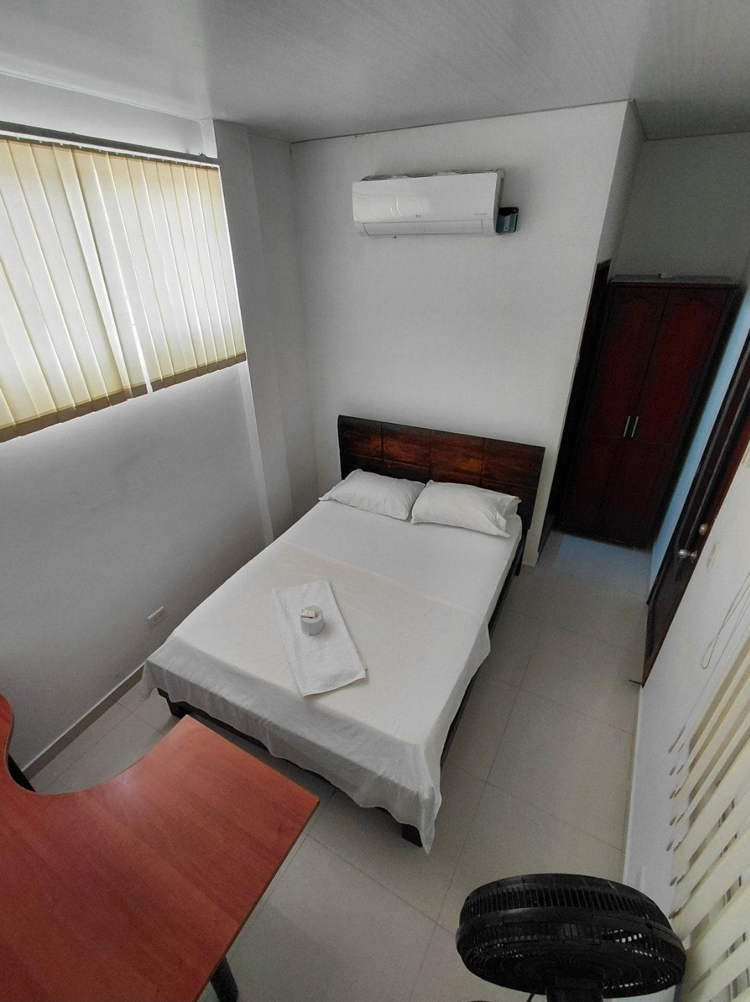 Te presentamos el primer hotel Low Cost de Villavicencio. Te ofrecemos una opción económica para tu estancia, sin sacrificar comodidad ni calidad. Contamos con habitaciones limpias y funcionales, un personal amable y atento, comprometido a brindarte una experiencia cómoda y sin complicaciones durante tu visita. ¡Reserva ahora!