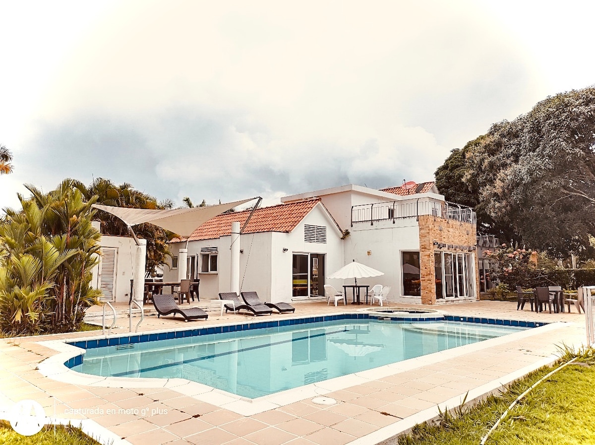 Beautiful house very close to the city of Villavicencio, only 15km on the way to Puerto Lopez. It has a swimming pool, BBQ, Ping-pong table, kiosk in the pool area, soccer field, and a firewood oven. Very spacious and with beautiful natural spaces. We also have 20MB Wifi internet ideal for Home Office!