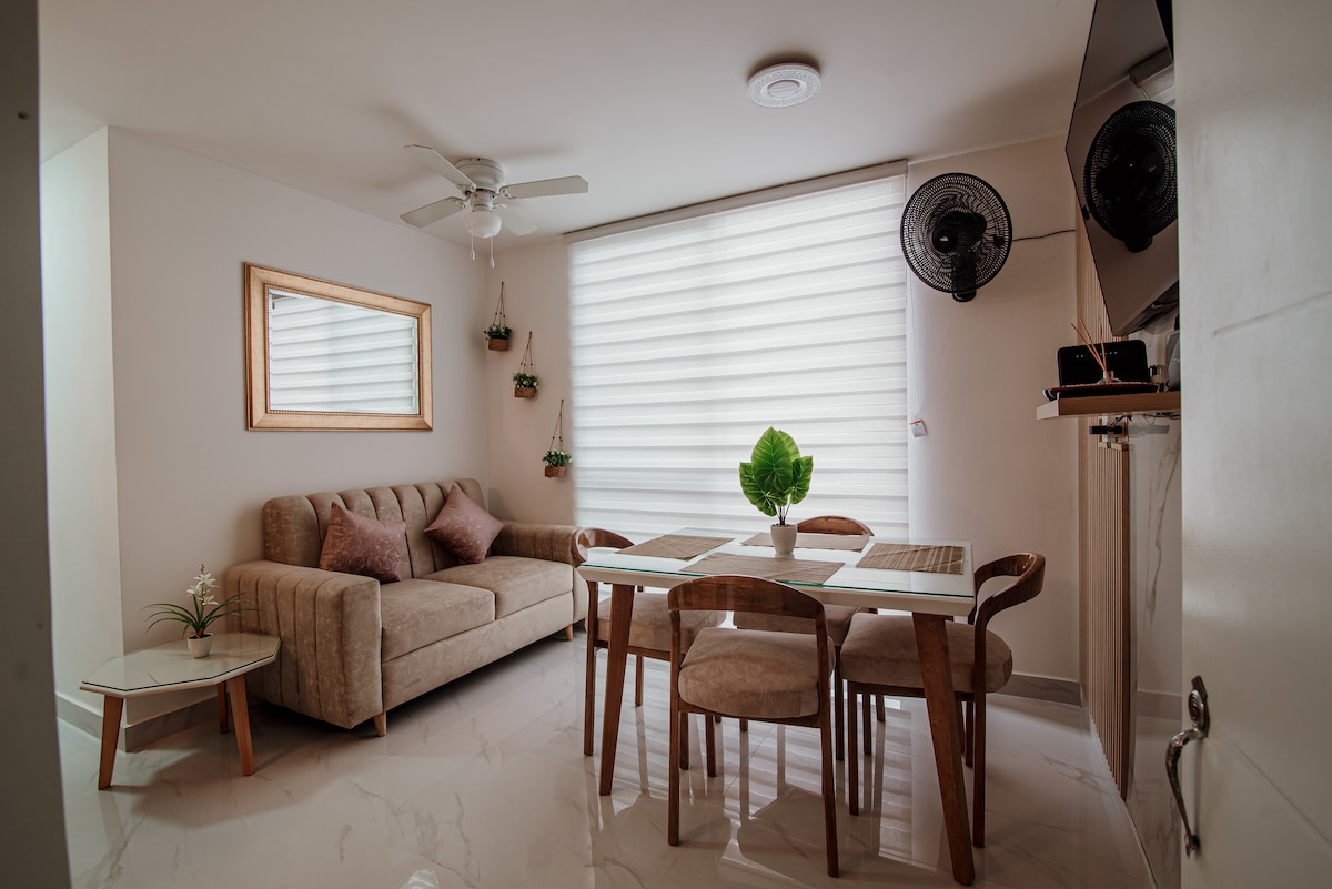 ¡Bienvenid@ a tu rincón cómodo en Villavicencio! Este aparta-estudio es perfecto para parejas, viajeros solos o pequeños grupos que buscan una estadía práctica y tranquila. Disfruta de un ambiente limpio, acogedor y funcional, a solo 2 minutos en carro de la Zona Rosa y de comidas rápidas de la Grama y a 3 minutos del centro de la ciudad, además con una tienda Ara justo al frente, ideal para hacer compras rápidas.
