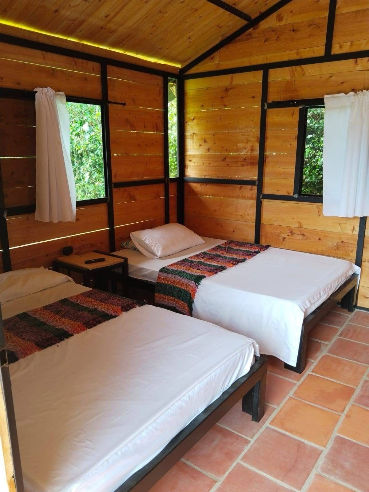 Cabaña río, es una cabaña que cuenta con todas las comodidades para tu estar en medio de la naturaleza, allí podrás escuchar los cantos permanentes de los pájaros y adicionalmente el sonido que emite el río que podemos observar desde la cabaña. Es un lugar ideal para desconectarte con tu cotidianidad y conectarte con la naturaleza y contigo mismo.
