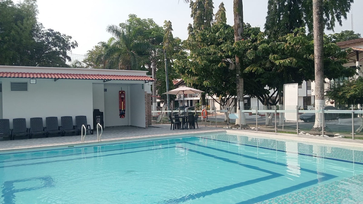 ✨Your urban oasis in Villavicencio✨ Spacious 3 Bedroom/2 Bathroom, A apartment with panoramic balconies and stunning views. Guaranteed 100% water supply 🚿, air conditioning, hot water, TV with 1000+ channels and ultra-fast fiber internet. Fully equipped kitchen, washer, dryer and safe. Enjoy private parking, 24/7 security, elevator and pool 🏊♂️. Centrally located near shops, restaurants and public transport for a convenient stay