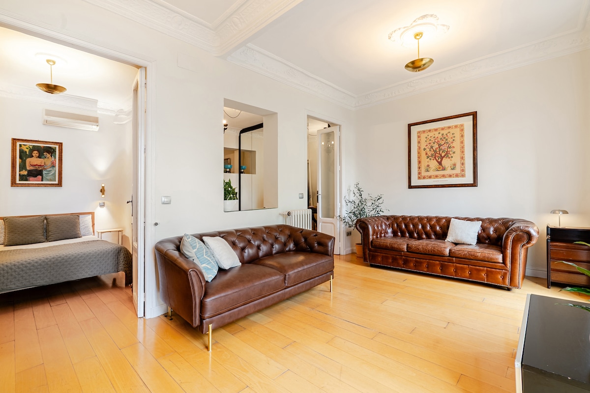 Completely Redecorated! Elegant and Charming unit. Well located and very well conected. A great option to LIVE MADRID! Completely renovated and well-equiped, it is a low-ground unit (level -1) with plenty of windows facing two inner courtyards, with AC and heating system. Close to ATOCHA, and within a minute of Metro and bus stops. Relax in its private PATIO. Pet friendly. We love animals! We will do everything possible for you to get the maximum of Madrid too! :)