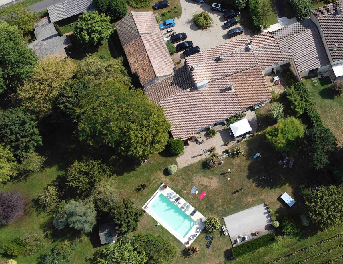 Au pied d’une forteresse du XIII siècle, au cœur du vignoble des premières côtes de Bordeaux, nous vous accueillons dans une ancienne propriété de 1860 entièrement rénovée. Vous pourrez profiter de la piscine (privative pour les invités), d’une terrasse privée (avec une table pour 4 personnes,du BBQ) ,du jardin clos et arboré , mini green de golf . Le parking se situe dans la cour et est sécurisé. Nous sommes bilingues (anglais) et pourrons vous apporter notre aide pour découvrir la région.