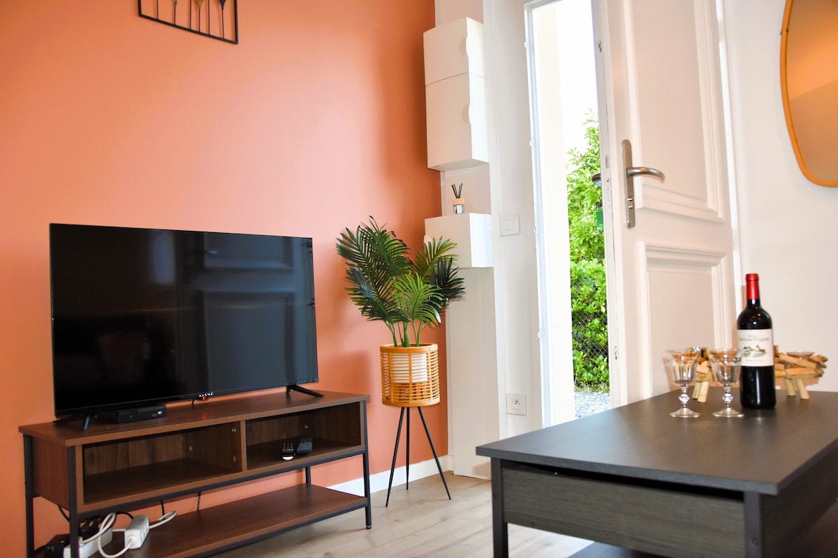Charmante maisonnette de 31 m² entièrement rénovée, idéalement située à 2 minutes à pied du tramway lignes C et F, station Stade Musard, le Stade Matmut 30 minutes, à 5 minutes de la gare, 15 minutes du centre de Bordeaux, et à 35 minutes de l’aéroport. L’ARENA 15 minutes à pied. Vous apprécierez ce logement pour son confort, le calme, sans vis à vis, l’emplacement, sa terrasse et son jardin fleuri 🌸 Dotée du Wi-Fi, cette maison est parfaite pour les couples, les voyageurs en solo ou d’affaires