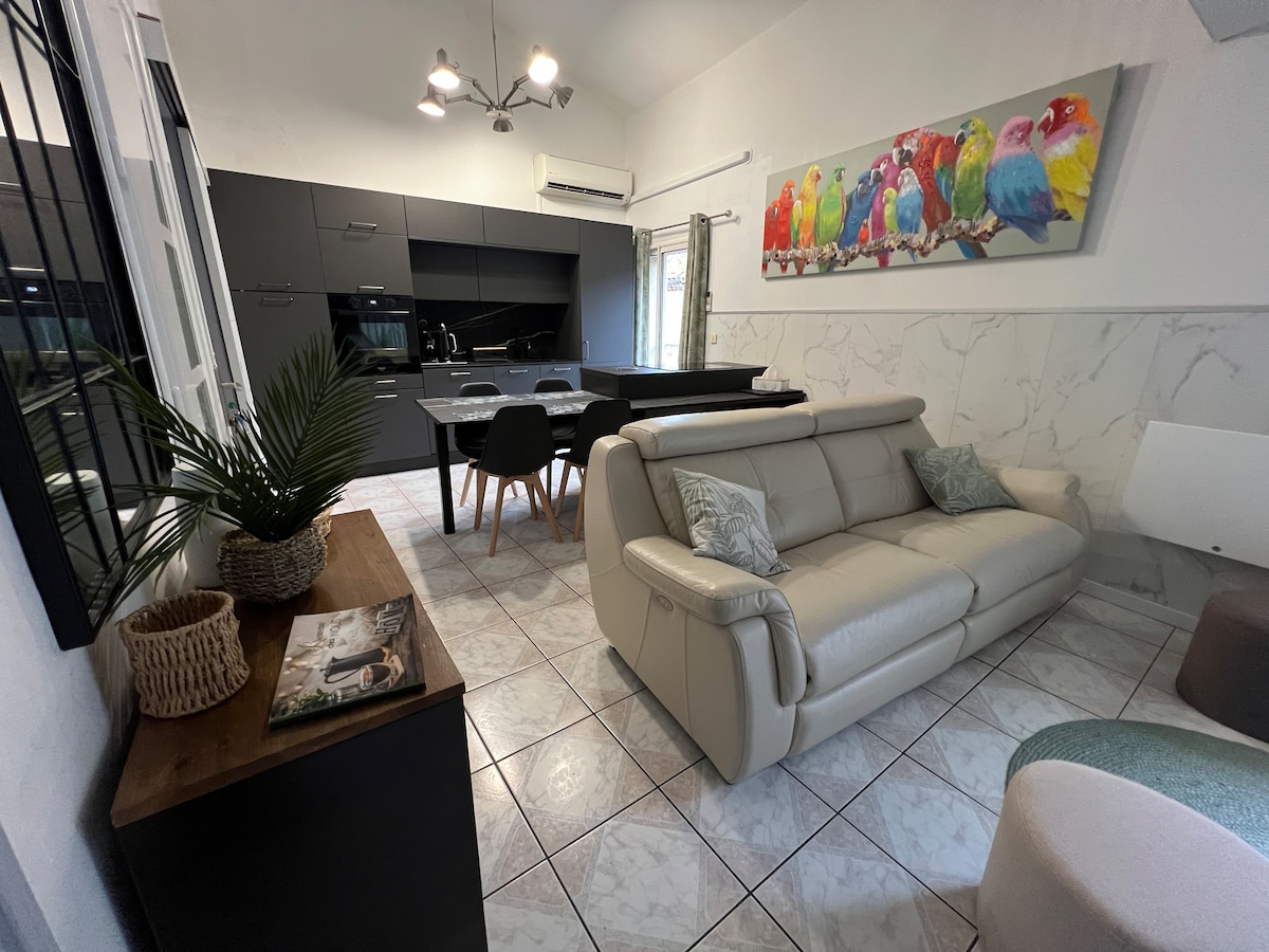 Located in a peaceful residential area, we welcome you to our gîte Le Muscari. 23 m² apartment, adjoining our house, you will find all the necessary comfort for a pleasant stay. You have access to deckchairs for a relaxing break in our Provençal-scented garden. This recent gite offers you a private terrace, garden furniture and plancha, a living room with TV and equipped kitchen, a bedroom for 2 people and a shower room.