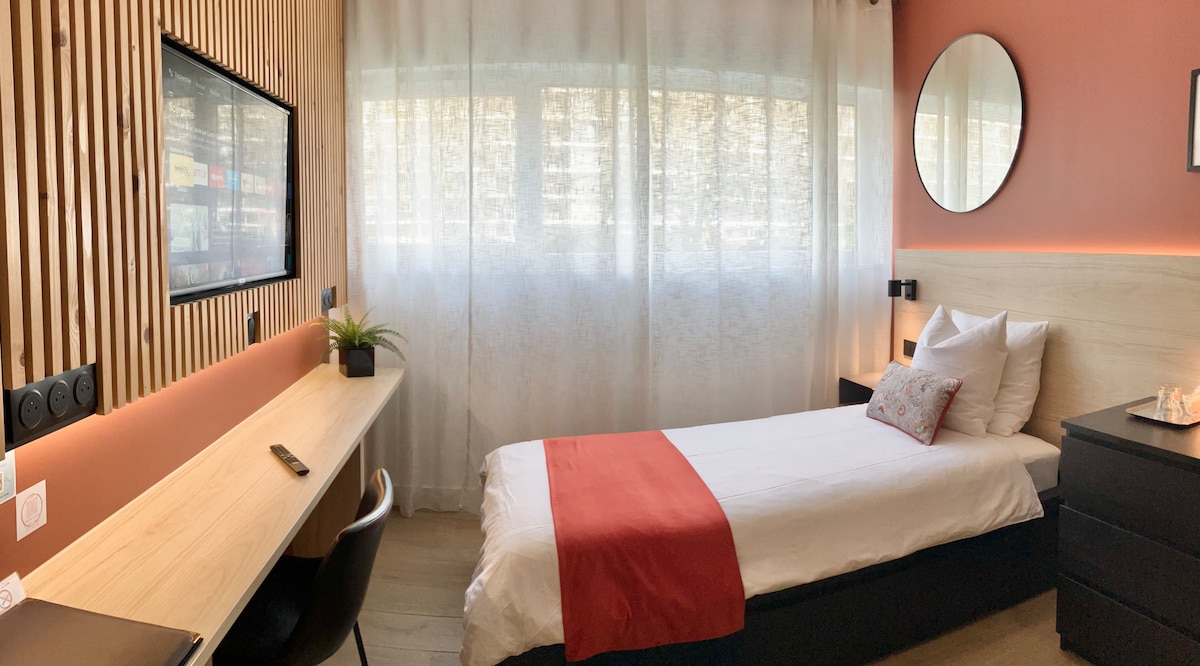 单间公寓和露台,靠近体育场,欢迎动物入住