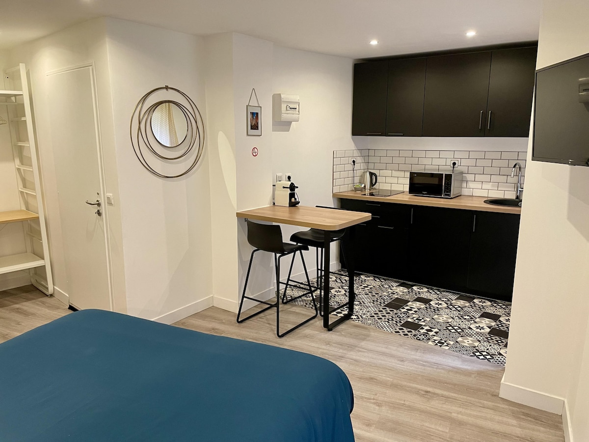 Comfortable, non-smoking 38m² studio. On the 3rd and top floor with elevator. Air-conditioned, comfortable, quiet, and elegant. For urbanites. Equidistant from the train station and the bus station; an 8-minute walk. Breathtaking, unobstructed view of the city's rooftops. Unobstructed horizon overlooking the Pyrenees. Cozy retreat or bars and restaurants. Explore the entire city on foot, 30 minutes from the beach (bus), and 40 minutes from the 9 locks. Ideal for business travelers.
