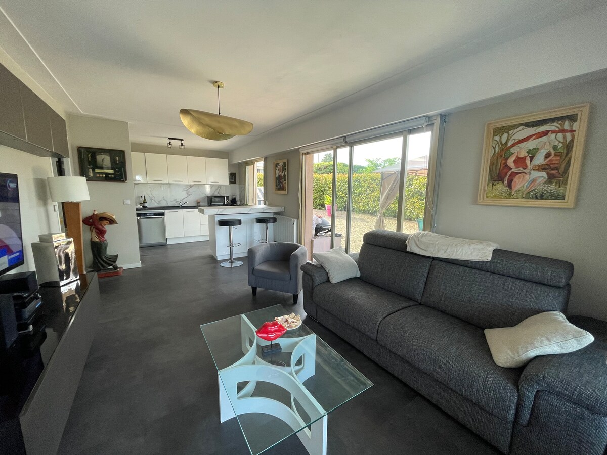 🏖️ Appartement 2 pièces de standing ⏱️ À seulement 30 secondes de la plage 🏢 Résidence neuve avec rooftop & piscine à débordement 🌳 Vue dégagée sur parc calme, exposition sud-ouest (couchers de soleil 🌅) 🚗 Parking privé • ❄️ Climatisation • 🛎️ Conciergerie 🛍️ Commerces & restaurants à deux pas 🛏️ Lit King size 🛜 Wifi performant