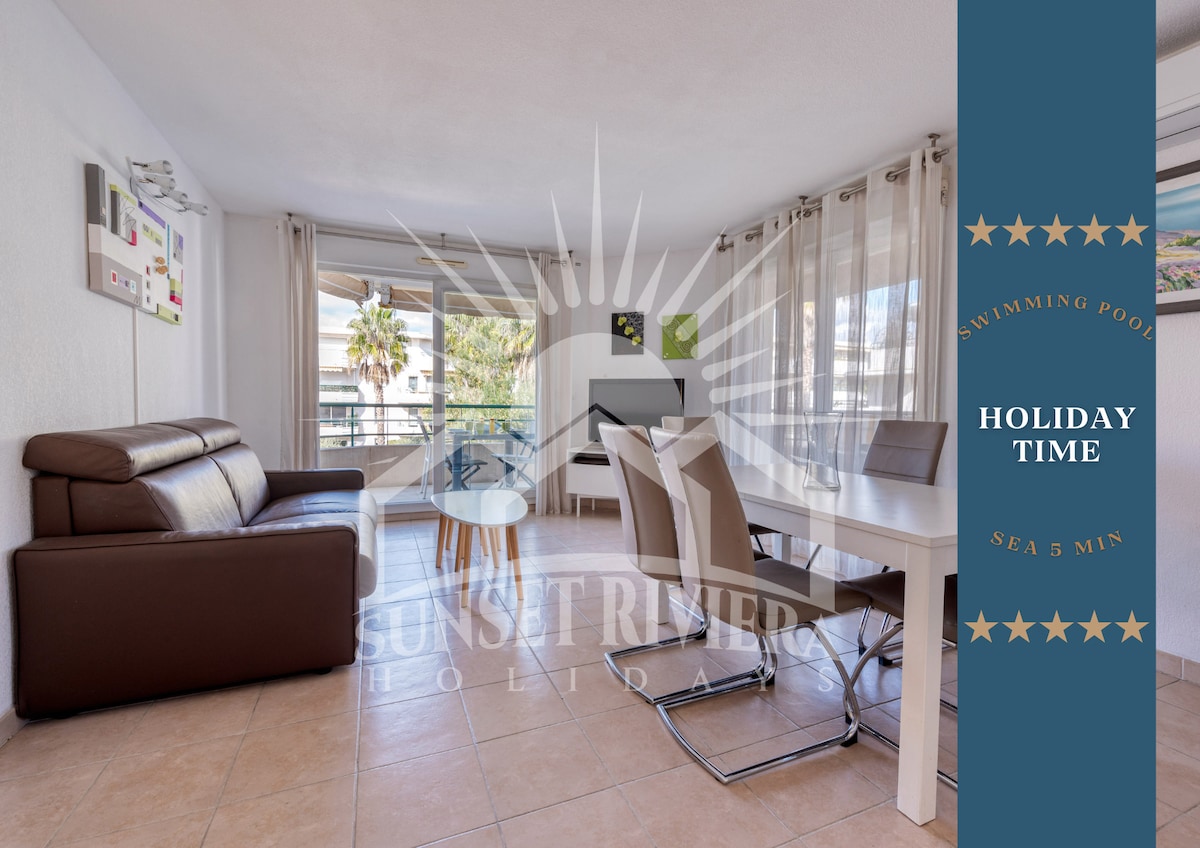 2卧室公寓,带泳池,空调,靠近海边,位于尼斯和戛纳之间