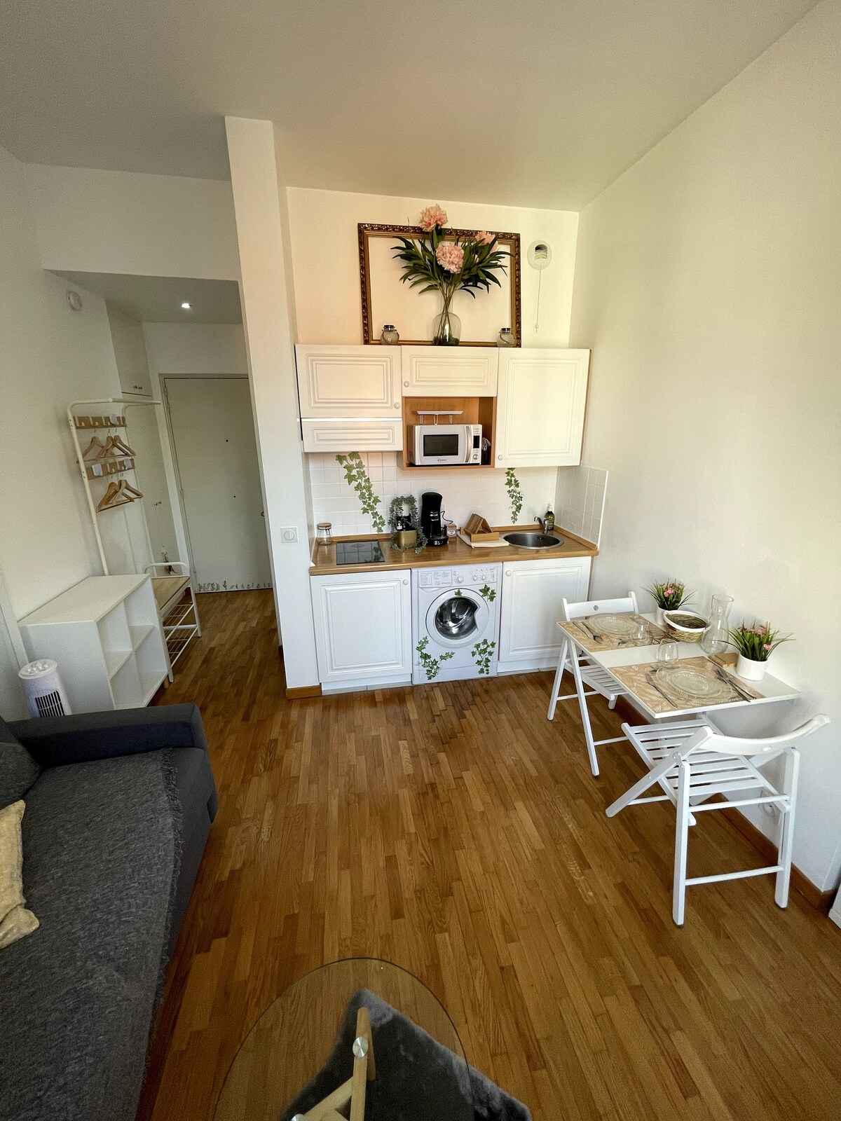 Très beau studio de 25m2 avec balcon entièrement rénové, son séjour comporte le lit, sa TV HD, ses nombreux rangements ainsi que sa cuisine ouverte entièrement équipée (plaque de cuisson, réfrigérateur-congélateur, four combiné, lave-linge), son îlot central pour prendre vos repas ou à utiliser comme bureau, son Balcon aménagé pour prendre son petit déjeuner ou ses repas. Au Cannet, proche de toutes les commodités (Bus, Autoroute, Restaurants, Boulangerie, Supermarché, Pharmacie... )