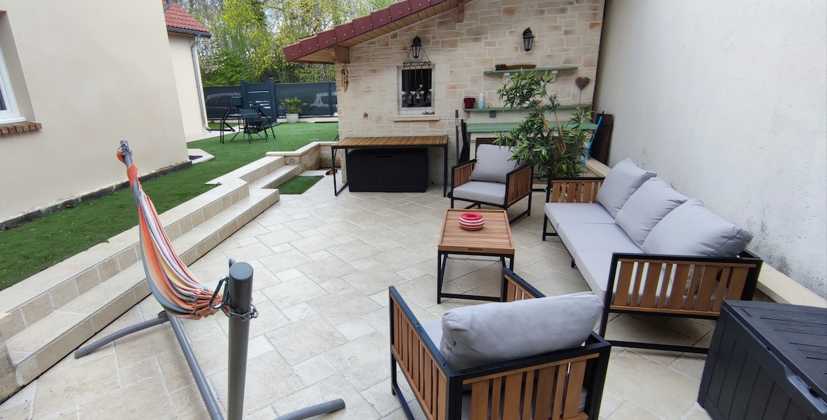 → Appartement de 2 pièces à seulement 1 minute à pied du RER C et à 15 minutes en voiture de l’aéroport d’Orly → 1 lit double Queen Size dans le chambre + 1 canapé lit dans le salon → Parking gratuit dans la rue → Internet Wifi Haut débit → Smart TV → Terrasse privée aménagée avec un barbecue, table et chaises extérieures → Four, micro-ondes, machine à laver, étendoir, fer à repasser → Machine à café (capsules et sachets de thé offerts) → Linges de maison fournis (draps et serviettes)