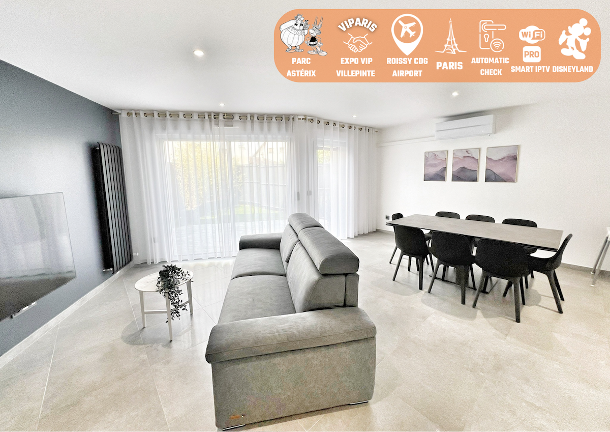Ce pavillon charmant et pratique est idéal pour un séjour confortable. À proximité de l'aéroport CDG et du Parc des Expositions de Villepinte, Paris est accessible en moins de 30 minutes en RER. Le pavillon dispose également d’un parking privé équipé d'une borne de recharge électrique. Que vous soyez ici pour un événement au Parc des Expos, pour le travail ou simplement pour explorer la région parisienne, notre pavillon vous offrira un séjour agréable et pratique. Soirées et fêtes interdites!