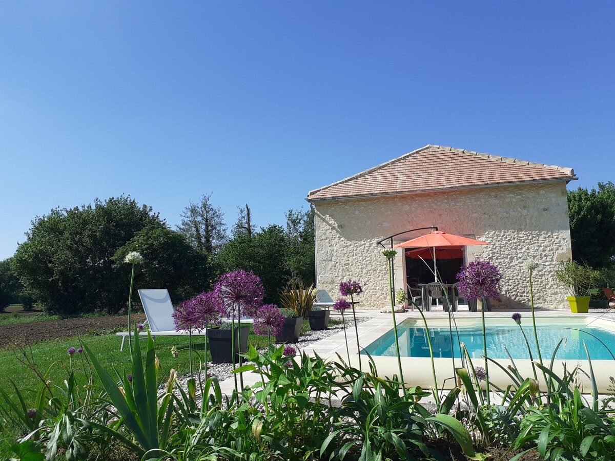 Sited on 1 hectare of private grounds, surrounded by farmland, 15 minutes south of the Dordogne. Outdoor swimming pool 12 x 6 meters (shared with our 1 bed gite) with a Roman end for easy access from the patio. The gite, stone built, is on one level with wide doors, making it wheelchair accessible. 5 mins from two of the most beautiful villages in France and many other historic villages and châteaux nearby. Includes all the necessary comforts you'd need, including a welcome pack on arrival.