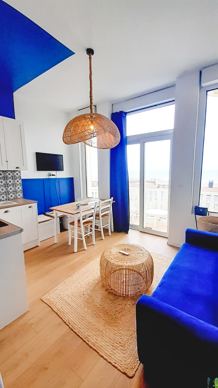 Venez vous ressourcer dans ce magnifique appartement de 25m2, pleine vue mer à la décoration « cabine de plage » ! Entièrement rénové à l’été 2024, il est situé en front de mer, à 2 pas du centre ville de Villers-sur-Mer : idéal pour profiter de la plage, de la ville et de ses activités. - Linge de lit et de toilette fourni - Wifi et TV connectée - 1 petite chambre avec lit 140x190cm - Salon avec canapé convertible très confortable 140x190cm - Cuisine équipée - Entrée avec coin bureau