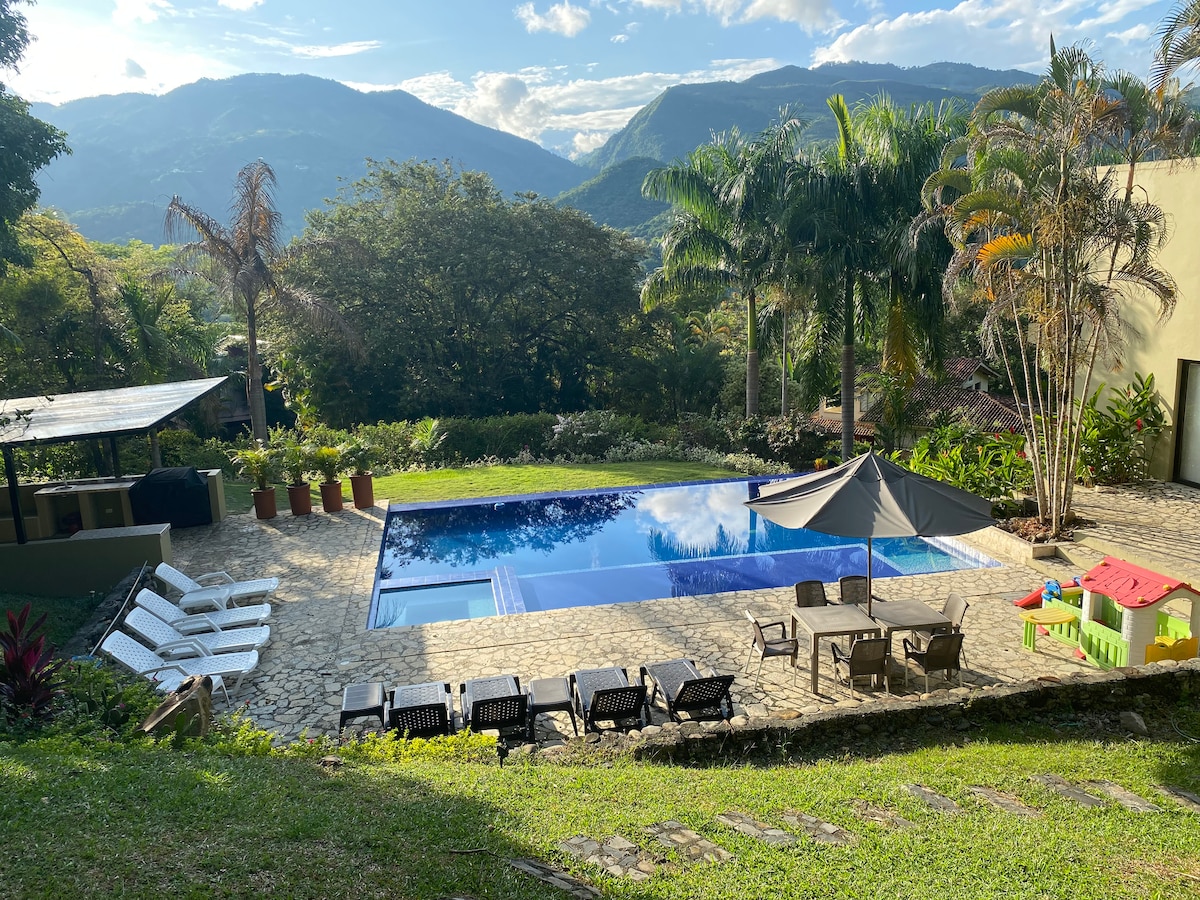 Ubicada a 5 mins del club Payande, espectacular casa de recreo en terreno de 3400 mts con 5 cuartos, 6 baños, amplia zona social con terraza, piscina y jacuzzi privado, cocina abierta, gran pérgola con zona de descanso y BBQ a gas, hermosa vista 360, Wifi, en conjunto cerrado con cancha de tenis en polvo de ladrillo, sede social con piscina, jacuzzi, mesa de Ping pong, billar y parque de niños. La portería queda sobre la carretera Bogotá-Villeta y es muy cerca de lugares para hacer ecoturismo!