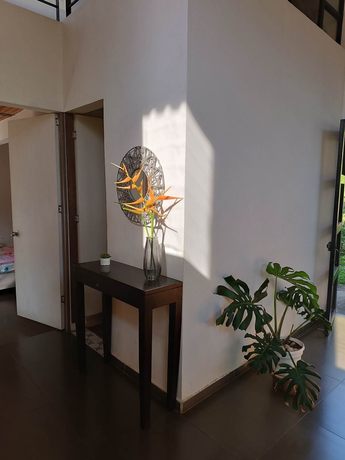 Acogedora vivienda en conjunto campestre, a 6 km de Villeta, descanso, tranquilidad, lejos del ruido. Sala, comedor (8 puestos), internet (teletrabajo), cocina, estufa de 6 puestos/horno/gratinador, 4 cuartos (2 con baño privado), 5 baños (3 con ducha y agua caliente), piscina, kioscos con bbq/horno de barro/mesas de billar/pool/ping pong, parque con columpios/deslizador/casa en el árbol, parqueadero amplio, hamacas, energía solar, rampa móvil para silla de ruedas. Capacidad hasta 15 personas.