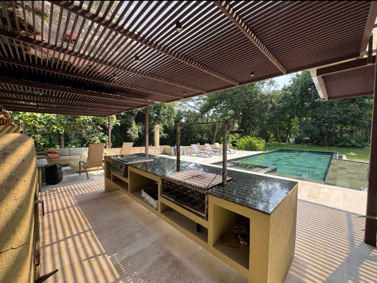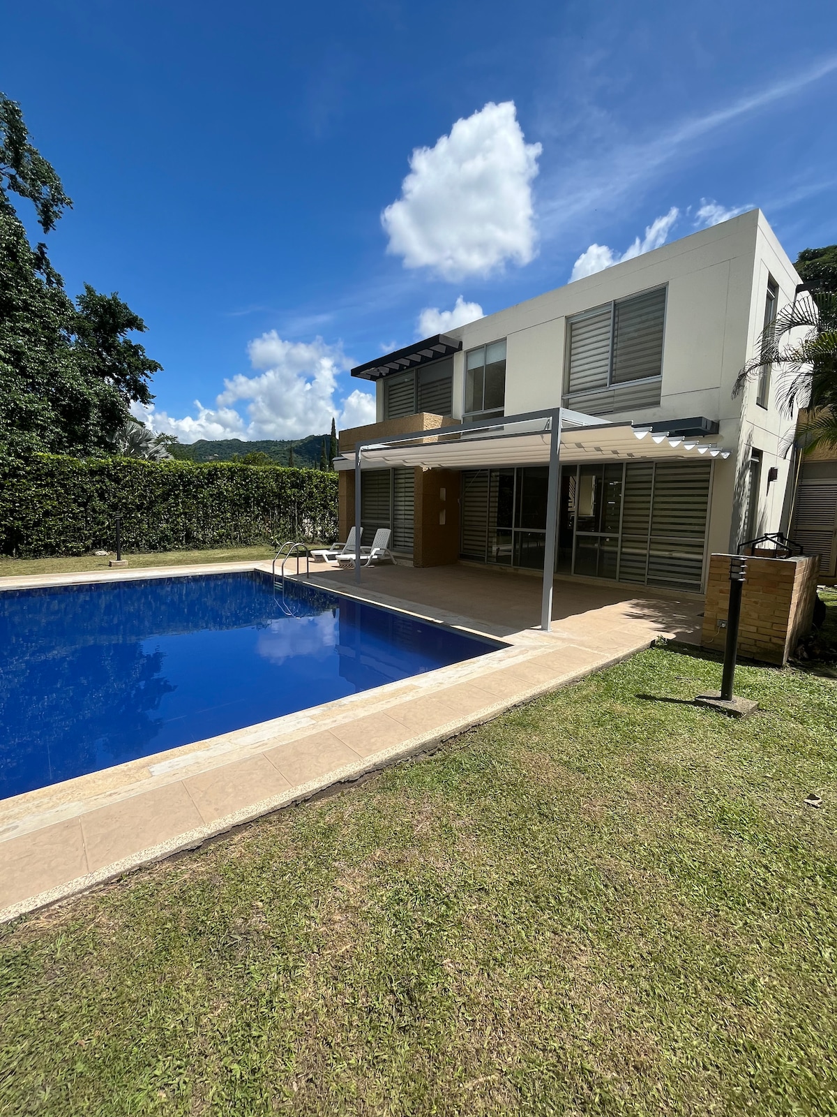 Espectacular casa de 400m2 con un diseño moderno y minimalista en un condominio privado con seguridad 24/7 y senderos en la mitad de la naturaleza a solo dos horas de Bogotá. Para un máximo de 12 personas en 5 habitaciones, 6 baños, !piscina climatizada!, zona de comidas al aire libre con BBQ , horno para pizza, lindísima área social con techos en bambú con comedor para 10 y sala con vista a la piscina. Moderna cocina totalmente dotada, Smart TV´s, Wifi y más! Reserva segura con TopSpot®!