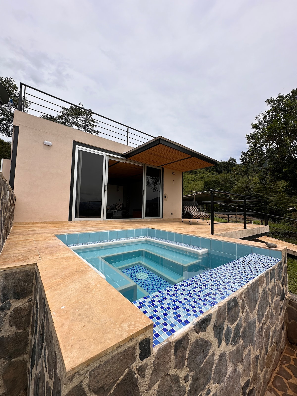 🌿 Cabaña Eco-Sostenible con Piscina Privada – a solo 15 min de Villeta 🌿 Escápate de la rutina y conéctate con la naturaleza en esta hermosa cabaña construida con materiales amigables con el medio ambiente y energía solar. 🌞 🏡 La cabaña incluye: • 1 habitación con cama doble • Baño privado • Jacuzzi + catamarán 🚣♂️ • Piscina privada • Cocina totalmente equipada • Zona de BBQ •Zona de horno • Parqueadero privado • Espacio para fogatas 🔥 • ¡Botella de vino de cortesía! 🍷