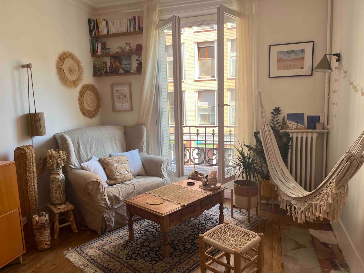 Charmant appartement de 42m2, cosy au mobilier vintage en plein cœur du 19ème arrondissement. Idéalement situé entre le plus joli parc de Paris : les Buttes-Chaumont et les bords du Canal de l'Ourq - quai de Loire. Il se compose d'une entrée avec wc séparé et cuisine équipée, une jolie pièce de vie, une chambre avec lit queen size et salle de bain avec fenêtre. Au calme, sur cour. Le quartier est très mignon et dynamique, tous les commerces et le métro se trouvent au pied de l'immeuble.