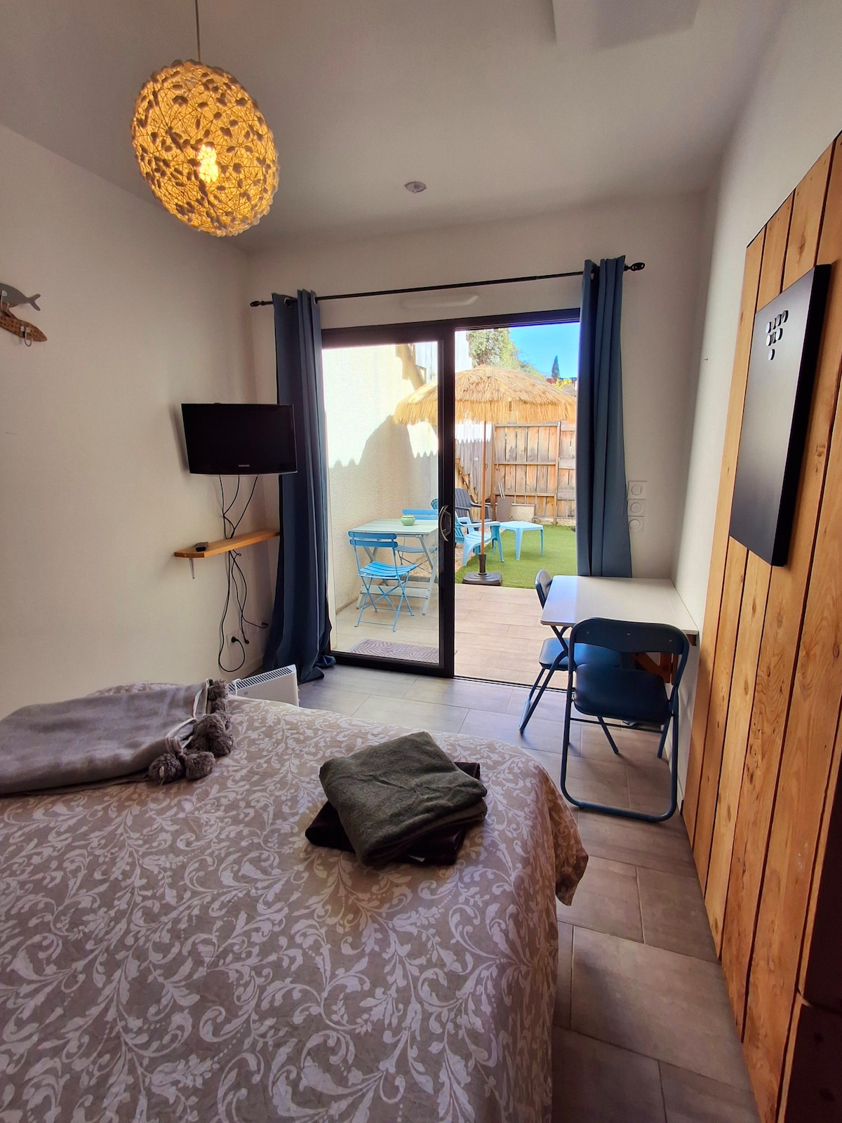 superbe grand studio tout équipé tout confort entièrement rénové ..... composé d'un coin cuisine plaque induction, hotte, frigo, senséo, micro-onde .... d'un lit en 160 cm avec tv grand écran et sdb avec douche disposez d'un extérieur avec terrasse pergolas pour les repas ou bronzette ! piscine ouverte du 1 mai au 1 oct non chauffé situé à poussan dans une partie de notre villa, entrée complètement indépendante ... à 10 km de frontignan à 13 km de Sète