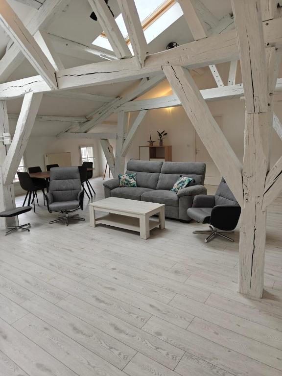 Bienvenue dans ce charmant appartement, parfait pour une escapade reposante ou un séjour professionnel L’appartement offre une cuisine équipée, un salon confortable avec un espace repas En cuisine, tout est prévu, du four à la cafetière senseo pour vous permettre de préparer de bons petits plats. La chambre confortable avec un lit 160x200 dispose de sa propre salle de bain attenante pour plus de confort. Wifi et décodeur TV Orange
