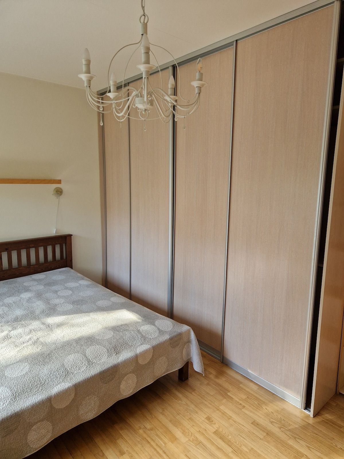 Comfortable and cosy one bedroom flat in Taikos Street, Justiniskes. The whole flat has recently been renovated and refitted with a new bathroom and new furniture. It has everything you need for your family to enjoy your stay in Vilnius and to have a good rest. My place is close to public transport and about 6.5 km to the City Center. Our bedroom has a comfortable double bed, if needed, we can provide a portable travel bed for your baby. Our living room has a sofa bed which sleeps two people