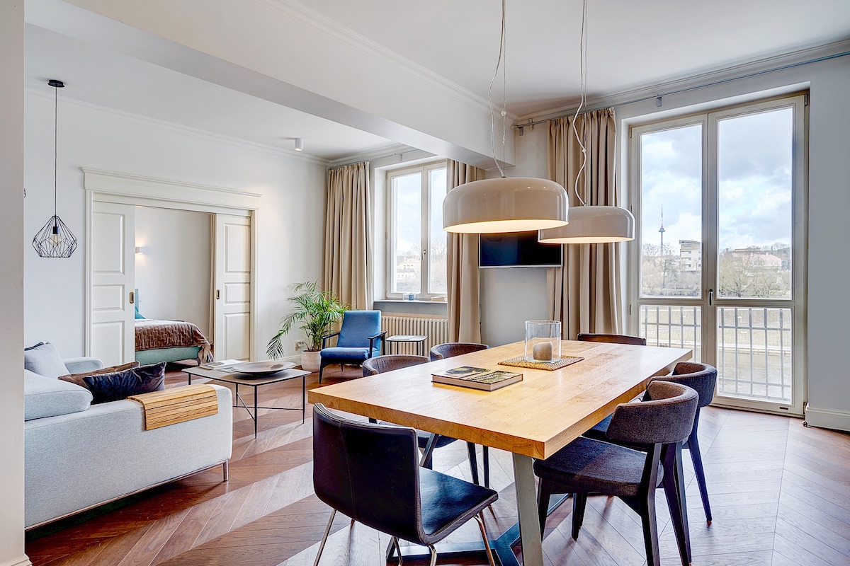 Apartment is just 10-15 minutes from the Old Town by foot. We offer a stay for 2 people, 75 sq m private area. Free parking. Guests will enjoy all basic amenities, free Wifi, Smart/cableTV, Netflix and gorgeous view of Gediminas' Tower from the balcony. Lush green area with promenade along the river Neris. Private parking space is garanteed. A higher standard of cleanliness.