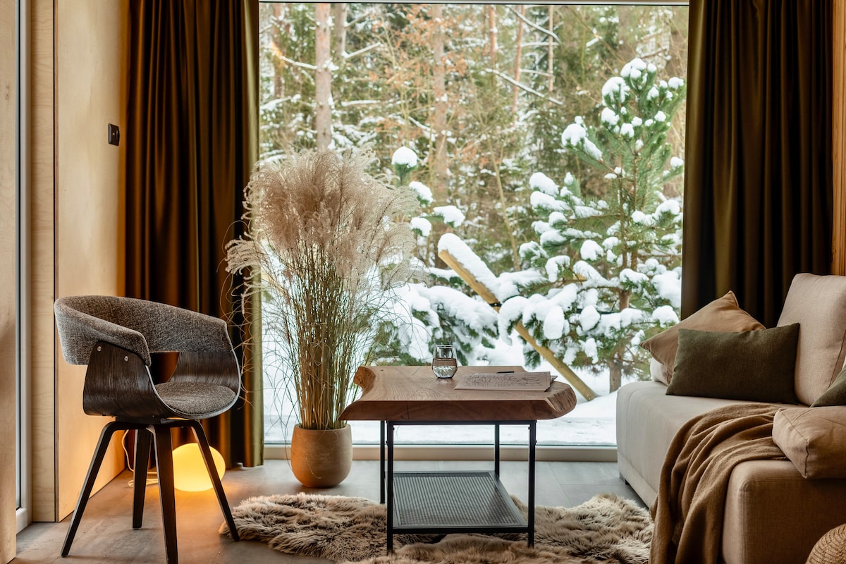 🦦We invite you to relax in a cozy cabin in the Lithuanian countryside! This is a new and comfortable holiday cabin on property with a view.🌱 🧑💼If you stay only 1 night - 20€ cleaning fee is applicable separate. 🧖♀️ Sauna cabin – €40 🫧Hot jacuzzi tub -50€. Pet fee 15€ Bolt taxi service is available. You will find some 🏸and table games.