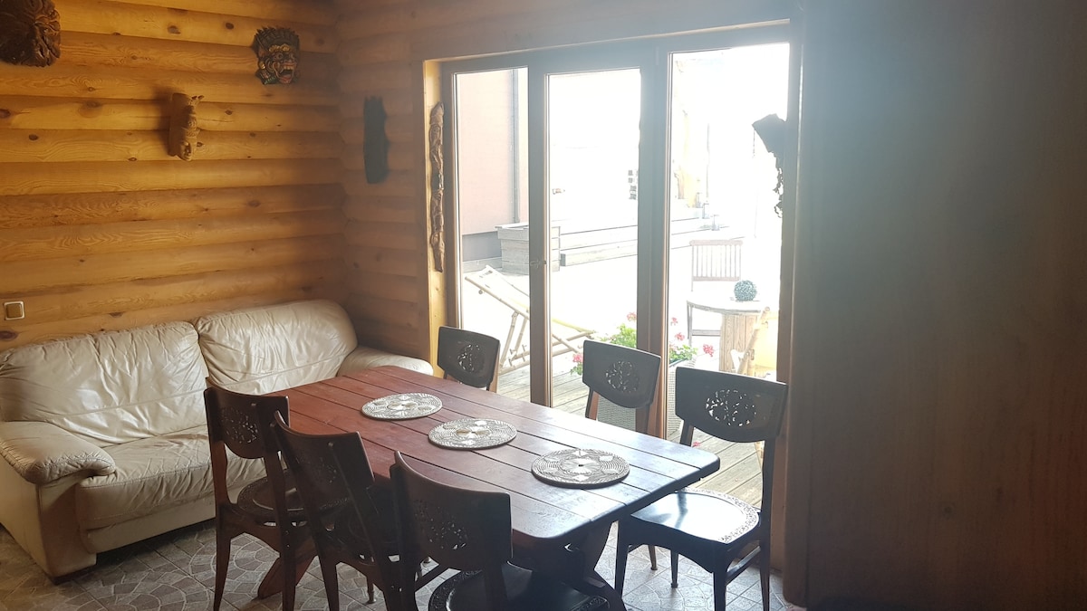 A modern 70 m2 one-bedroom apartment with all comforts in walking distance from Vilnius old town. Large living room with fully equipped open kitchen, bathroom with shower and large bathtube, bedroom with wooden shutters for darkness, sound system for romantic evenings with wine.