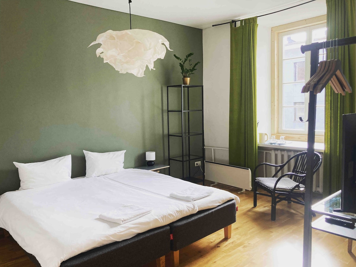 Apartment is located in old town near the central bus and train stations. Apartment was renovated in 2019 (2nd floor). Scandinavian style interior mixed with high ceilings and arched windows provide comfort and coziness. Guests will be accommodated with needed equipment, beddings and towels. Freebies like shampoo, soup, tea and coffee will be available. Public paid car parking on the street near the buiding.