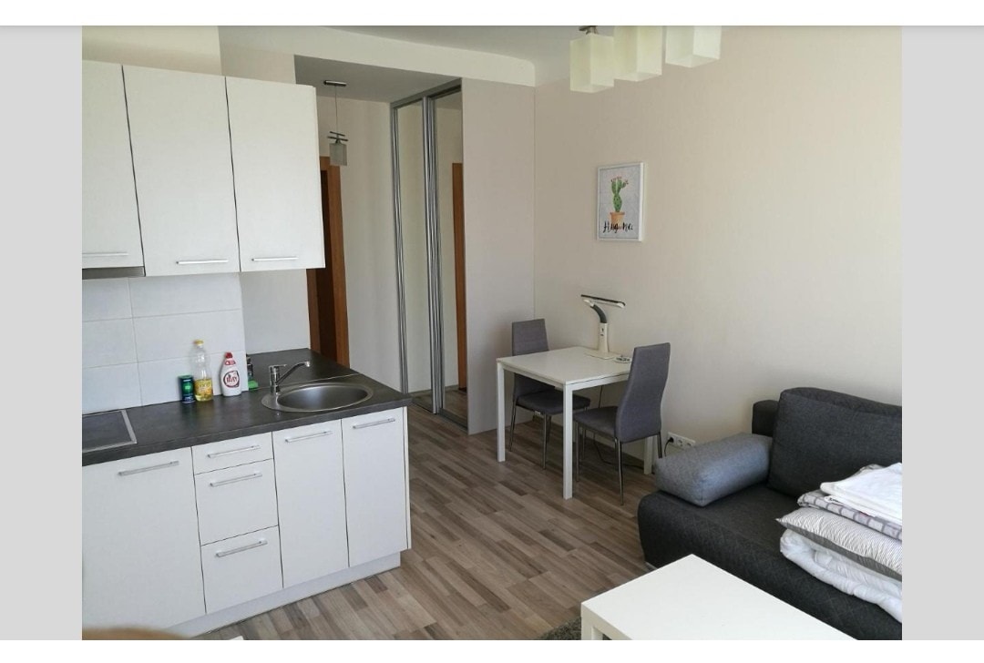 Paupys neighborhood is a new fashionable neighborhood is historic Old town of Vilnius. Here you can find a wide variety of cafes, shops, Paupys food court, a cinema and modern architecture residential houses.This cozy 24 sq.m. apartment offers a living room, all the necessary features, comfy couch which transforms into a bed, equipped kitchen, a bedroom and a balcony. Only paid street parking: I-VI 8-22, 1h - 2,5 Eur.