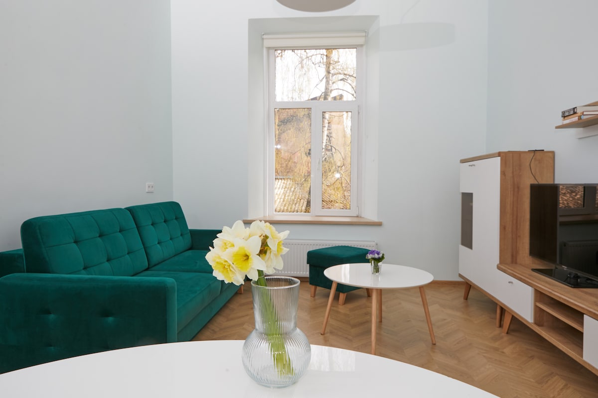 Spacious Apartment on the Neris River Do you want to stay in the heart of Vilnius, close to the city’s main attractions like the Cathedral and the Opera and Ballet Theatre, while still enjoying peace and space? We offer spacious two-room apartments with a separate kitchen, just minutes from the historic Green Bridge. Riverside apartments in the heart of Vilnius!