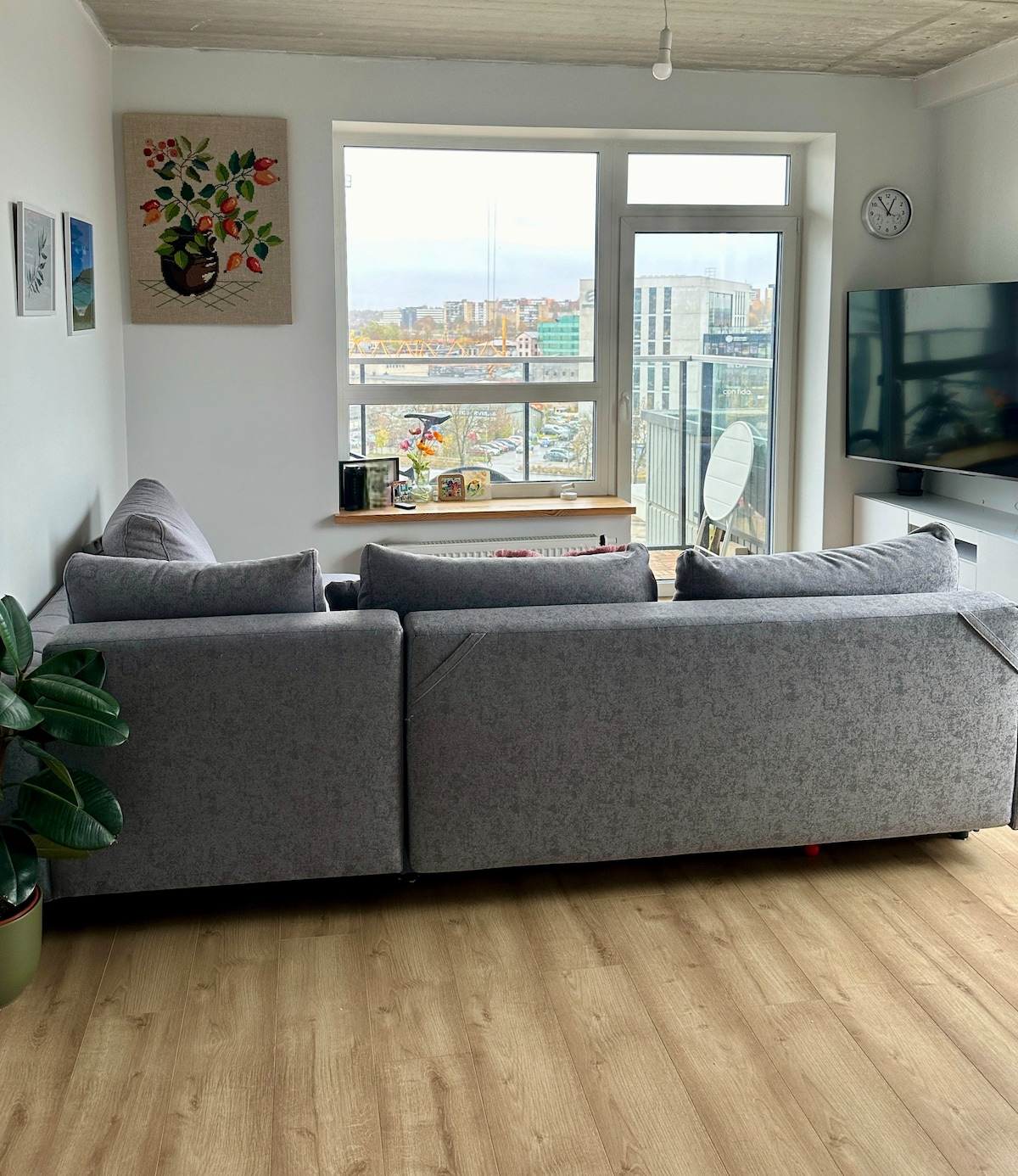 Spacious, modern, 90 sq./m. Penthouse type apartments. Surrounding the apartment is a stunning 170 sq./m terrace with wonderful views of the city of Vilnius. The apartment has two bedrooms and a common living room area connected to the kitchen. In the apartment you will find everything you need for your stay. Fully equipped kitchen, ice-making refrigerator, WC with bath, washing machine, desk, TV, WiFi, free underground parking. The city center is only 2 km away, it takes 30 minutes on foot.