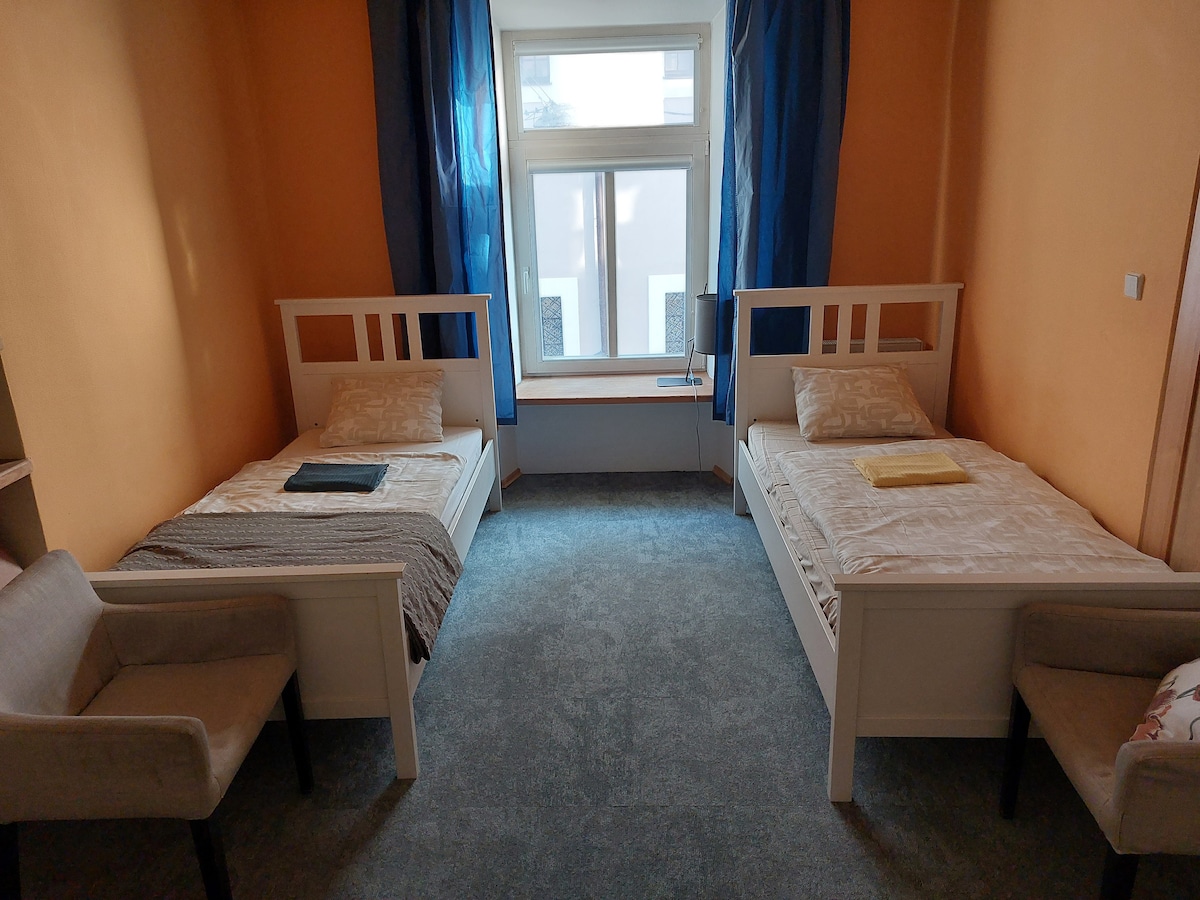 Double shared room with two separate beds and shared shower/toilet. All the guests are welcome to use all the shared spaces in a hostel.