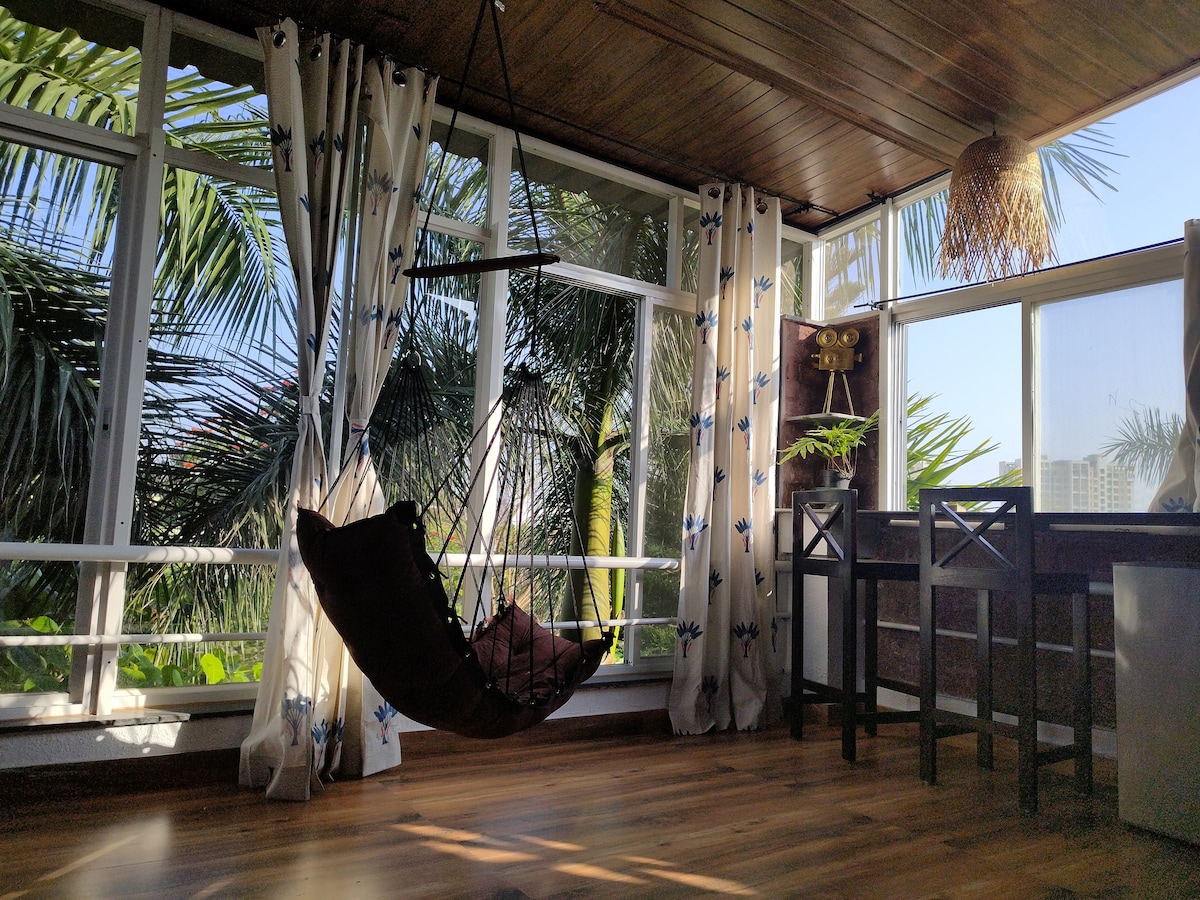 Take it easy at this unique and tranquil getaway. Just 5 mins drive from the airport ,this fully furnished home is made in elegant Bohemian theme, filled with plants and soothing colors, making it peaceful and cozy. It has full operational kitchen, bathroom closet, 1 bedroom , 1 living room, balcony dining area with BBq. This special place is in viman nagar and very close to Koregaon park, Kalyani nagar and kharadi . It’s very spacious and bachelor, couple, family and pet friendly.