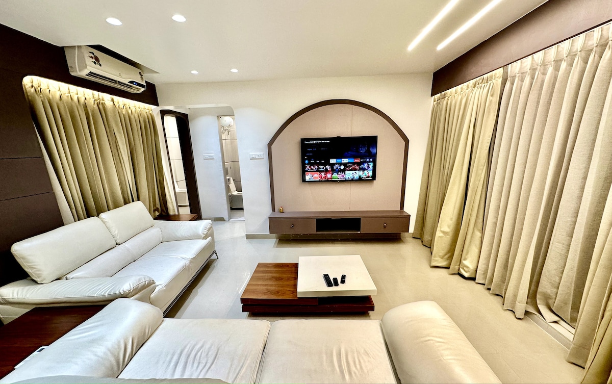 Welcome to our modern, cozy 2 BHK apartment nestled 15 minutes from Pune Airport. Enjoy the tranquillity of this modern retreat equipped with AC (in one bedroom). Stream seamlessly with up to 100mbps WiFi, and conveniently get groceries with our in-house supermarket. Savour complimentary tea and coffee as you unwind on premium mattresses dressed in quality linens. We've got you covered with provided shampoo and body gel for a worry-free stay. Experience comfort and convenience at its best!