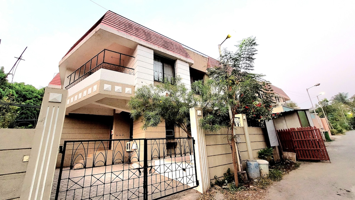 Welcome to our modern, cozy 2 BHK apartment nestled 15 minutes from Pune Airport. Enjoy the tranquillity of this modern retreat equipped with AC (in one bedroom). Stream seamlessly with up to 100mbps WiFi, and conveniently get groceries with our in-house supermarket. Savour complimentary tea and coffee as you unwind on premium mattresses dressed in quality linens. We've got you covered with provided shampoo and body gel for a worry-free stay. Experience comfort and convenience at its best!