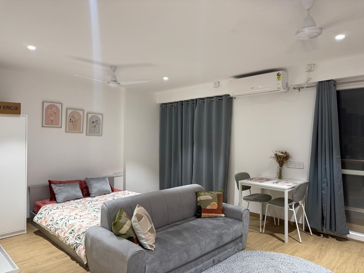 Welcome to Livara, a stylish 1RK apartment just a short walk from the airport. Perfect for solo travelers, couples, or business guests, it offers a blend of comfort and convenience. Enjoy fast Wi-Fi, Air-conditioned comfort, and smart entertainment for a relaxing stay. Thoughtfully designed interiors and a private balcony create the ideal space to unwind after a busy day. At Livara, you’ll feel right at home while staying close to everything you need.