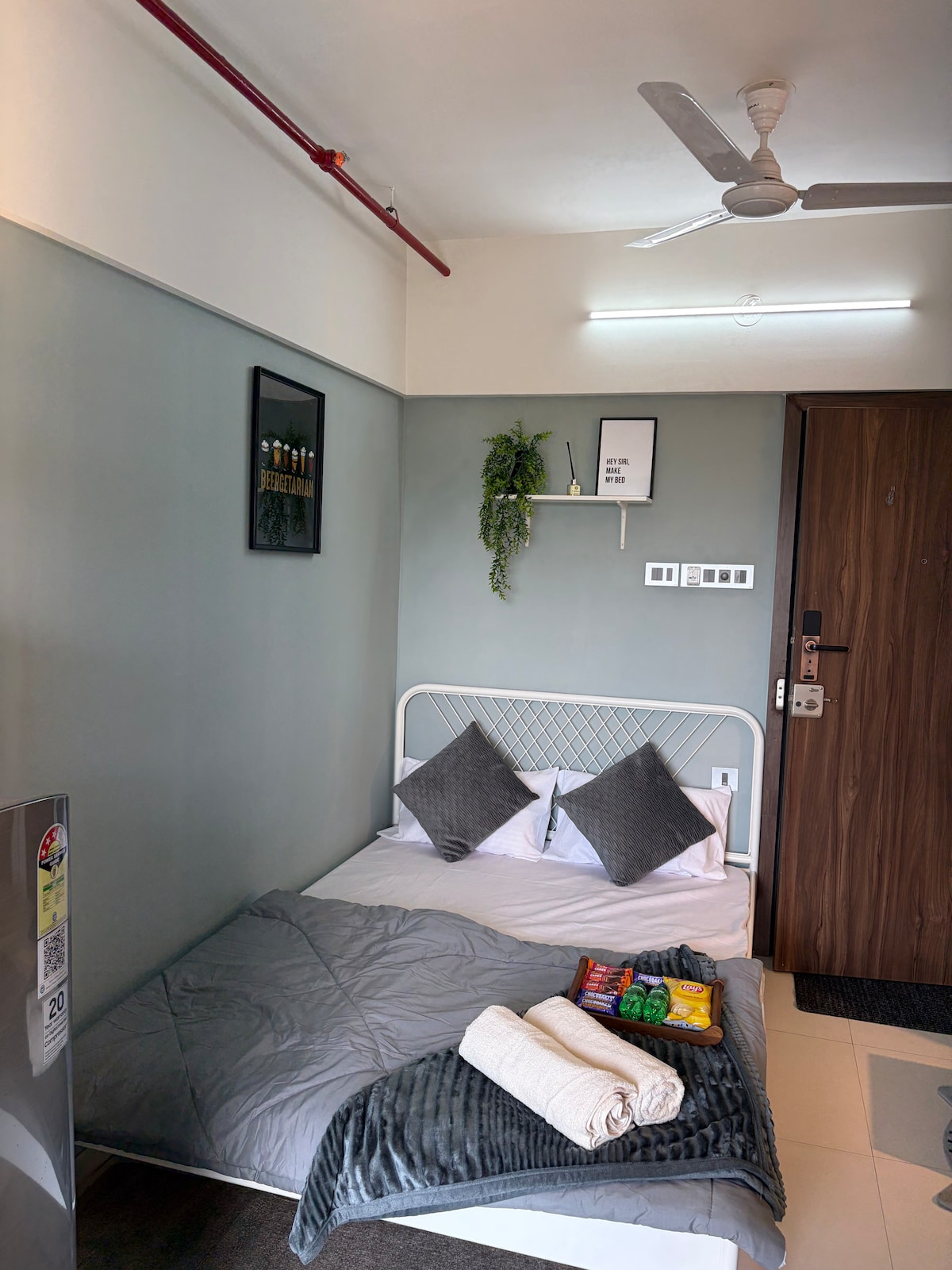 Stylish Airport Studio | Walk to Pune Intl. Airport Welcome to your perfect transit-friendly escape! This thoughtfully designed studio apartment is just a short 5-minute walk from both the departure and arrival terminals of Pune International Airport T2— ideal for jetsetters, business travelers, or anyone looking for a comfortable stopover.