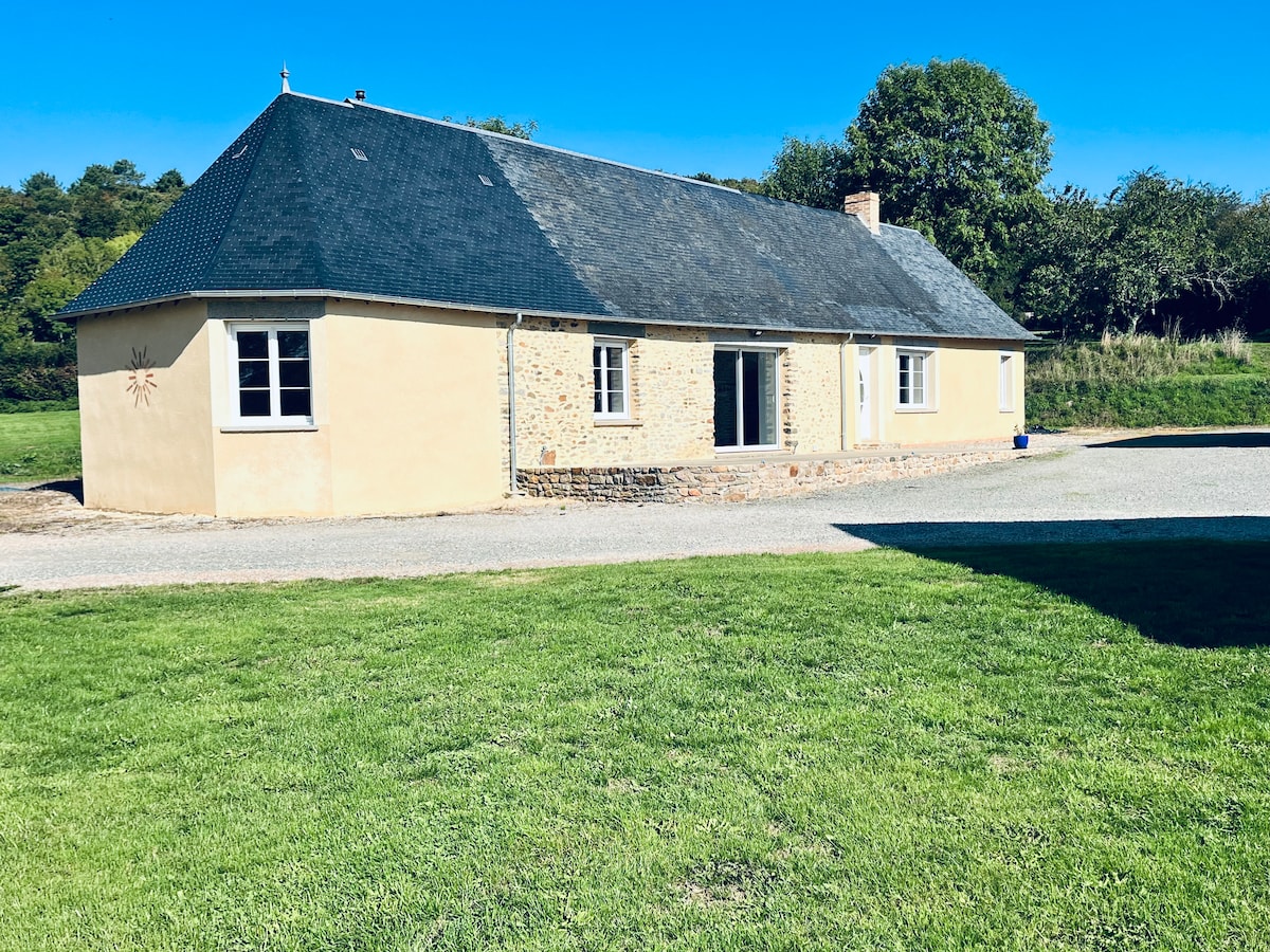 Logement situé a la campagne, calme paisible dans une vallée verte avec rivière et étangs à proximité. Logement entièrement refait à neuf avec cuisine équipée, salle à manger, salon, 2 chambres, salle de bain. Terrasse bien exposée de 50 m2 avec petit salon de jardin. Literie neuve Nous sommes près du Mont ROCHARD -(alt 357 mètres) et du Montaigu.(alt 291m) Près de Ste Suzanne (Un des plus beaux villages de France) -du plan d'eau de GUE DE SELLE (Mézangers) et de JUBLAINS (site archéologique)
