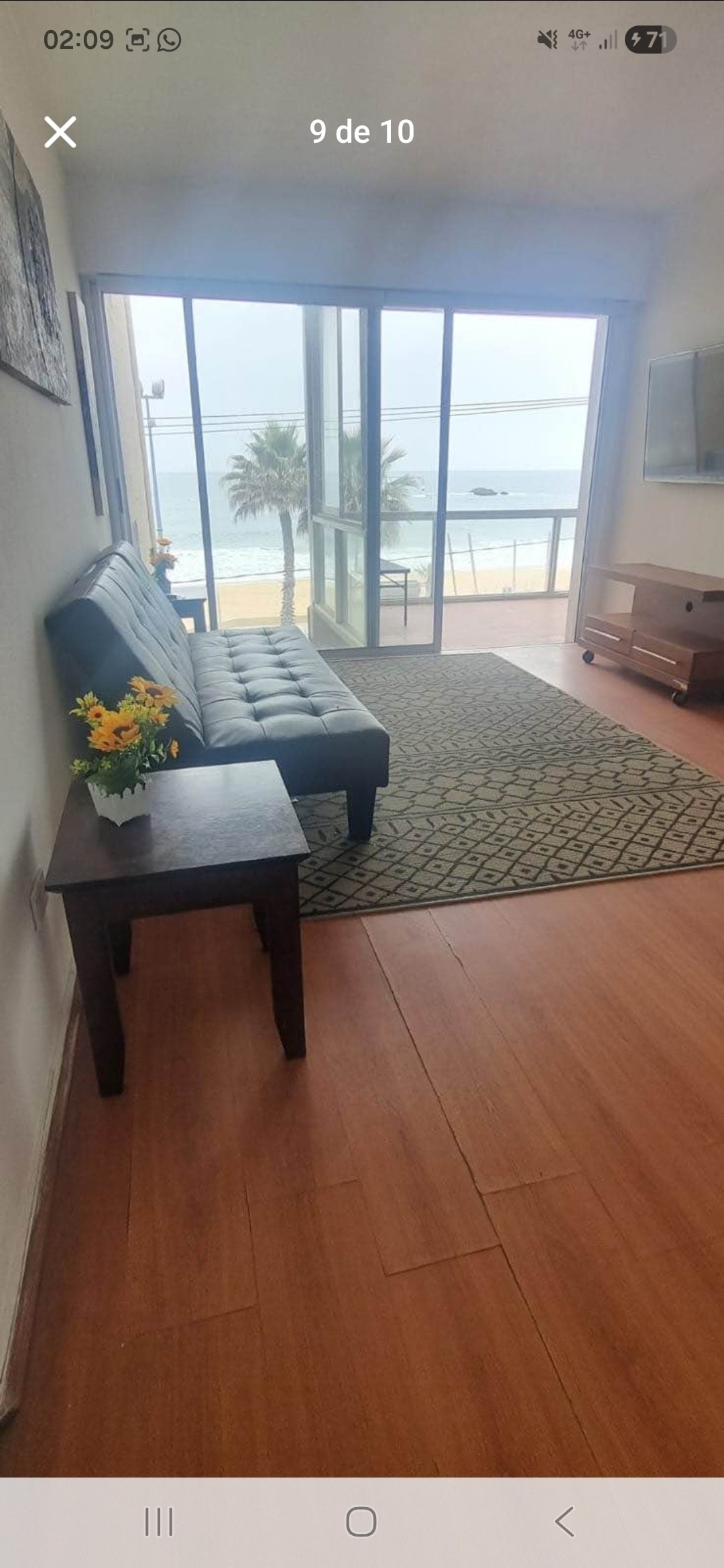 Cabaña una habitación grande, hasta 4 personas, terraza espaciosa frente al mar. 1 baño; cama y sofá cama 2 plazas; 1 closet; comedor, cocina equipada, parrilla gas ; TV SMART, WI FI ENTEL 400 MB FIBRA OPTICA; parlante, cerradura con clave; un estacionamiento interior gratuito .Piscina grande; conserje 24 horas, cámaras. Mascotas: Solo perros, cargo adicional 10.000. Terraza en altura., camino con escalas. Ingreso: 15.30 horas flexible. Salida: 12.30 horas, conversable. No lavandería.