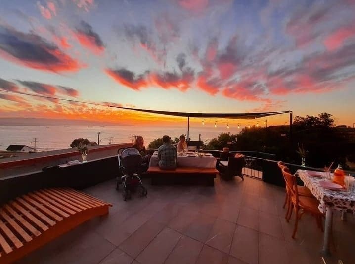 Nuestra casa fue diseñada para vivir la sensación de volar sobre el océano, a sólo 5 minutos caminando de la playa de Reñaca, todos los ambientes tienen vistas espectaculares al mar y la bahía de Valparaíso. Espacios comunes amplios y abiertos distribuidos en 3 niveles diferentes lo que hace muy única la experiencia dentro de la casa. La decoración es de autor, reflejando el cariño por las plantas y los tesoros. El acceso es a través de una escalera de 3 pisos, pero vale la pena el esfuerzo!