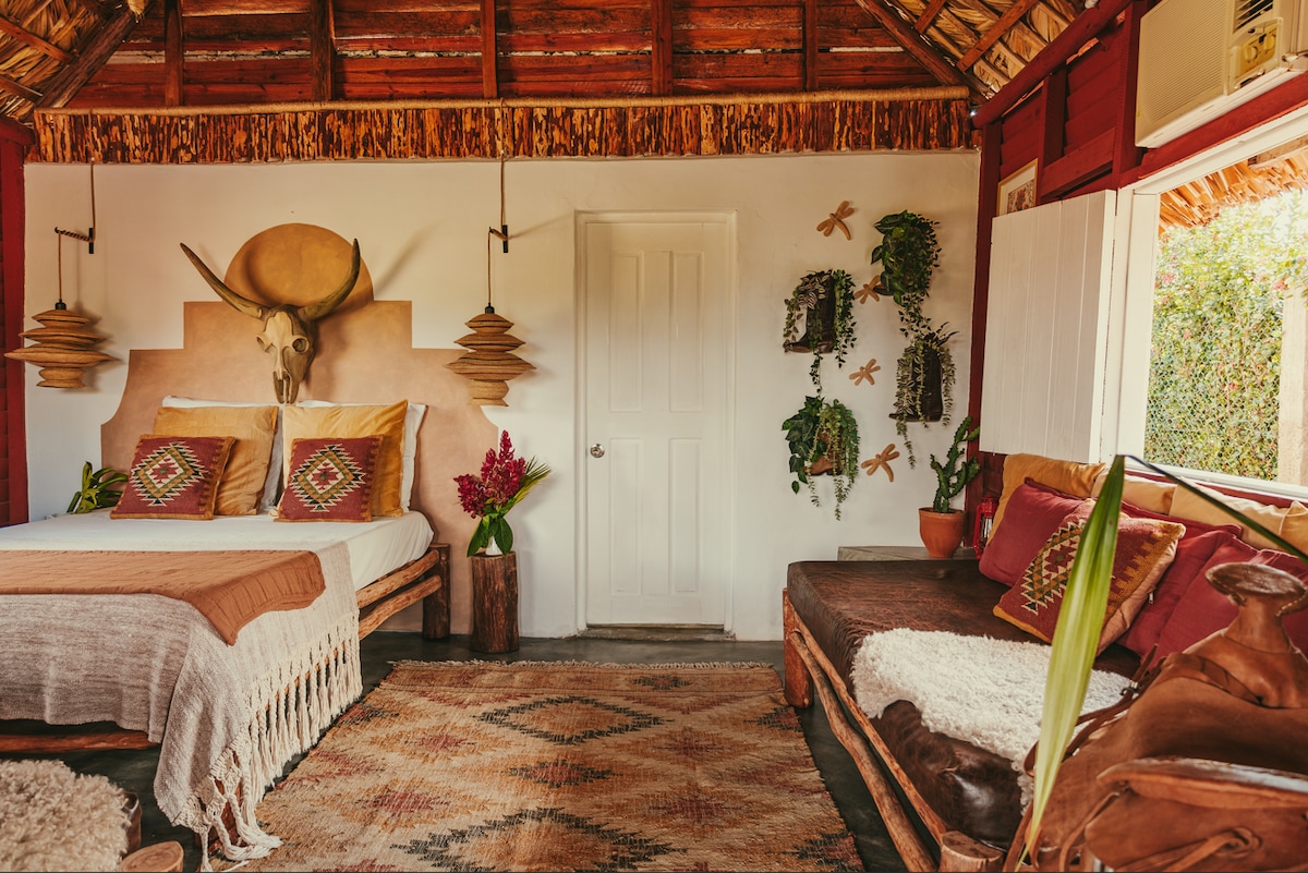 “El Rancho Colorado” is a standalone cabin with an immersive and unique design. Treat yourself to a Cuban cowboy escape with spectacular views of the countryside and the iconic mogotes of Viñales. Just a few steps from the town center, it can accommodate up to 4 guests and includes a private bathroom. Enjoy a warm, authentic, and memorable experience, with homemade meals prepared on-site. Powered by solar panels: no power outages, comfort guaranteed.