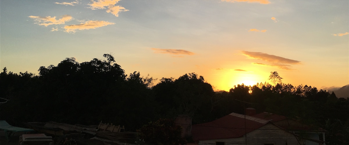 NO BUSQUES MAS,HAS ENCONTRADO EL PARAISO.UN ALOJAMIENTO CASA CAMPO UNICO,CON HABITACION PRIVADA.UN AMBIENTE TROPICAL Y UN ENTORNO FAMILIAR QUE TE HARA SENTIR COMO SI ESTUVIERAS EN TU CASA PRIVADA .VISTAS AL VALLE DESDE TODOS LOS ANGULOS DE LA TERRAZA.TODO TIPO DE EXPERIENCIAS IDEAL PARA HACER EXCURSIONES A CABALLO O CAMINANDO POR EL VALLE DE VIÑALES,VIAJES A NUESTRAS PLAYAS,TOUR EN BICICLETA,DESAYUNOS,CENAS,RON,TABACO,Y TRAGOS TRADICIONALES.