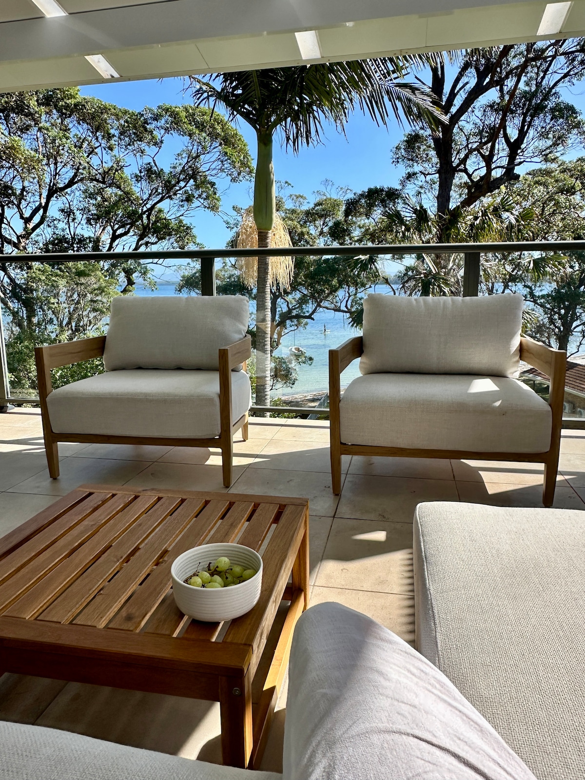 A true beachfront gem, Amethyst boasts some of the best views in Jervis Bay with an incredible outlook over Orion Beach. Enjoy its huge outdoor deck & leafy garden complete with fire pit, extremely comfortable lounge, dining area & more spaces to soak up the sea air & peaceful views. Inside, this charming retro house is brimming with character. It has been curated with creative flair, celebrating its 70s roots yet bringing a modern, comfortable & artistic feel to this relaxed 5 bedroom home