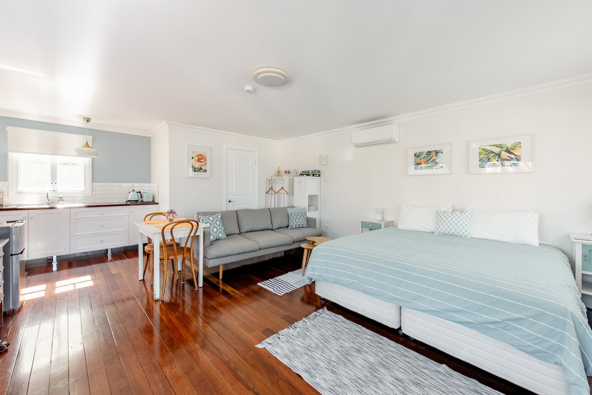 In the heart of Cambewarra Village you'll be staying at a light and airy, charming one room studio complete with a country kitchenette, vintage styled ensuite and front deck. Perfect for couples or friends or a solo traveller wanting a break away from the everyday. Cambewarra Village is 10 minutes from the town centre of Nowra and 15 minutes from the picturesque towns of Kangaroo Valley and Berry. A great base for all seasons as you explore the beautiful Shoalhaven region.