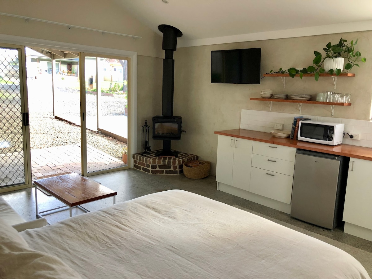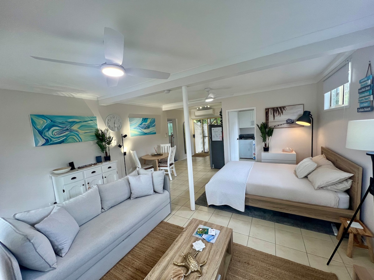 Bamboo Studio located across the road from the beach. Fully self contained and modern amenities. Quite location and small walk to local shops. Perfect for a couples retreat near the beach.